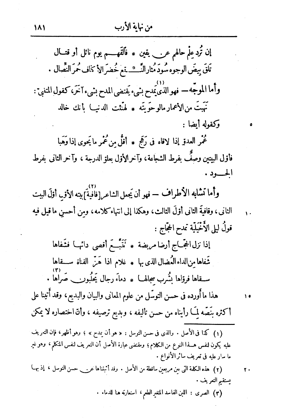 هذا ما أورده فى حسن التوسّل من علوم المعانى والبيان والبديع، وقد أتينا على أكثره بنصّه لما رأيناه من حسن تأليفه، وبديع ترصيفه، وأنّ اختصاره لا يمكن