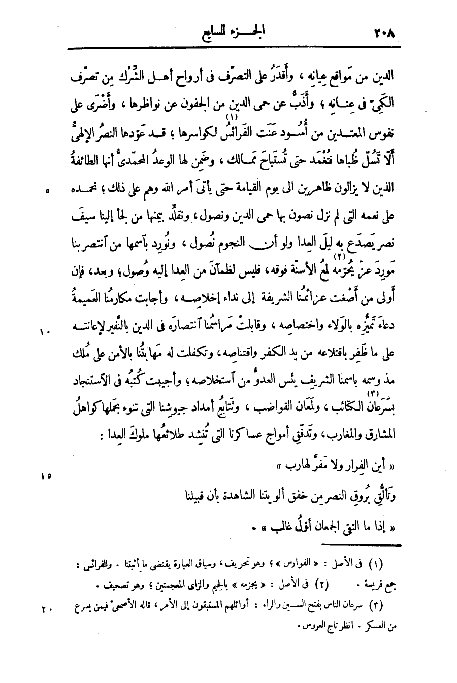 «أين الفرار ولا مفرّ لهارب» وتألّق بروق النصر من خفق ألويتنا الشاهدة بأن قبيلنا «إذا ما التقى الجمعان أوّل غالب» .