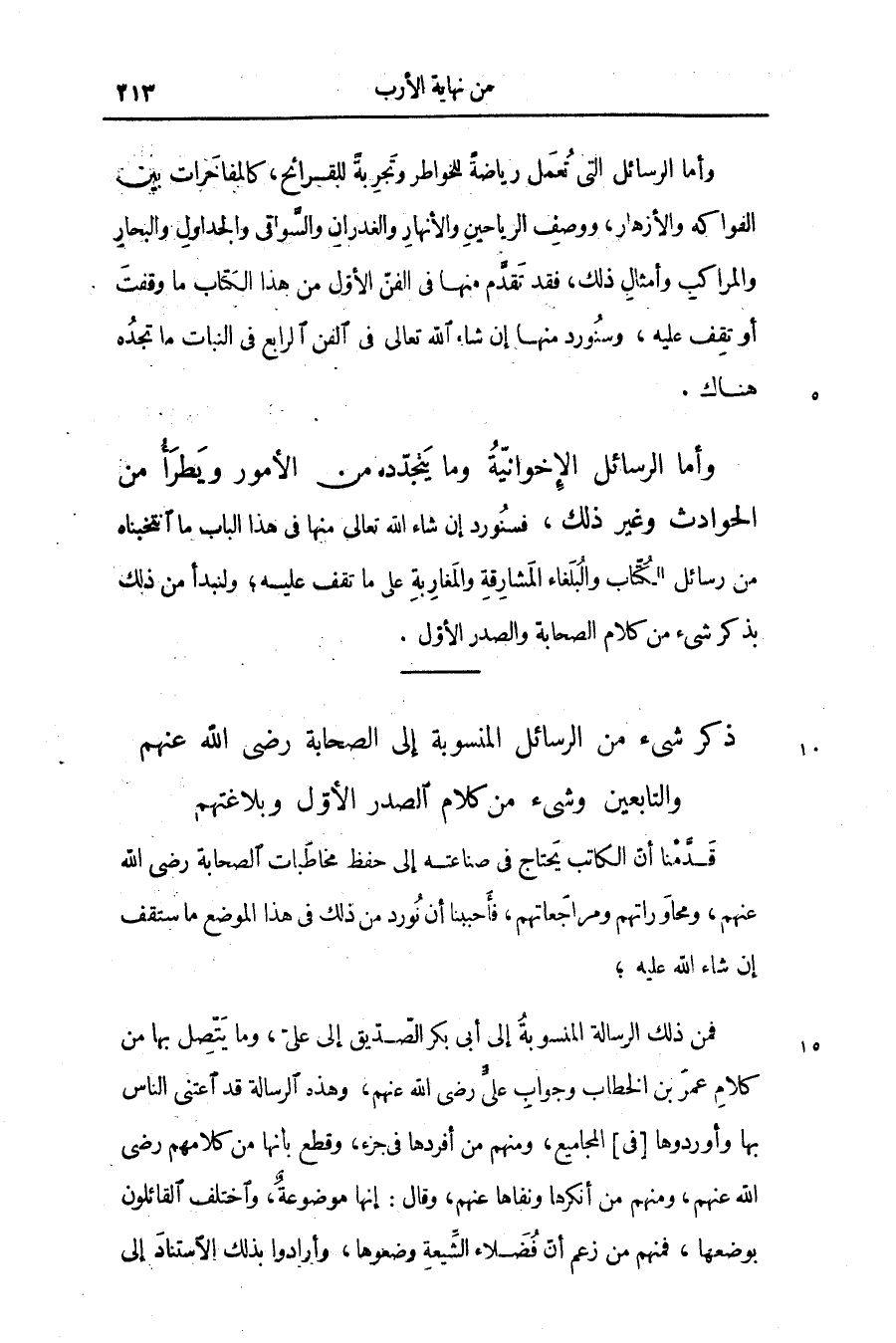 ذكر شىء من الرسائل المنسوبة إلى الصحابة رضى الله عنهم والتابعين وشىء من كلام الصدر الأوّل وبلاغتهم