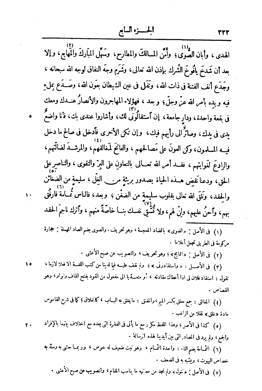 الهدى، وأبان الصّوى «1» ؛ وأمّن المسالك والمطارح، وسهّل المبارك والمهايع «2» ، وإلا بعد أن شدخ يافوخ الشّرك بإذن الله تعالى، وشرم وجه النفاق لوجه الله سبحانه، وجدع أنف الفتنة فى ذات الله، وتفل فى عين الشيطان بعون الله، وصدع بملء فيه ويده بأمر الله عزّ وجلّ؛ وبعد، فهؤلاء المهاجرون والأنصار عندك ومعك فى بقعة واحدة، ودار جامعة، إن استقالونى «3» لك، وأشاروا عندى بك، فأنا واضع يدى فى يدك، وصائر الى رأيهم فيك، وإن تكن الأخرى فادخل فى صالح ما دخل فيه المسلمون، وكن العون على مصالحهم، والفاتح لمغالقهم «4» ، والمرشد لضالّتهم، والرادع لغوابتهم، فقد أمر الله تعالى بالتعاون على البرّ والتقوى، والتناصر على الحق، ودعنا نقض هذه الحياة بصدور بريئة من الغلّ، سليمة من الضغائن «5» والحقد، ونلق الله تعالى بقلوب سليمة من الضغن؛ وبعد، فالناس ثمامة «6» فارفق بهم، واحن عليهم، ولن لهم، ولا تشق «7» نفسك بنا خاصّة منهم، واترك ناجم الحقد