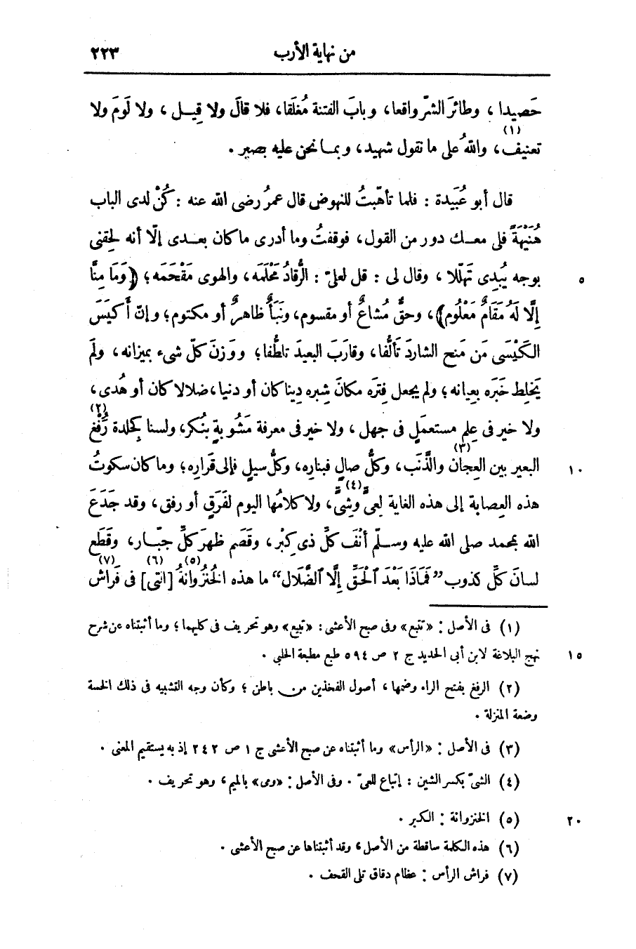 قال أبو عبيدة: فلما تأهّبت للنهوض قال عمر رضى الله عنه: كن لدى الباب هنيهة فلى معك دور من القول، فوقفت وما أدرى ما كان بعدى إلّا أنه لحقنى بوجه يبدى تهلّلا، وقال لى: قل لعلىّ: الرّقاد محلمه، والهوى مقحمه؛ وَما مِنَّا إِلَّا لَهُ مَقامٌ مَعْلُومٌ