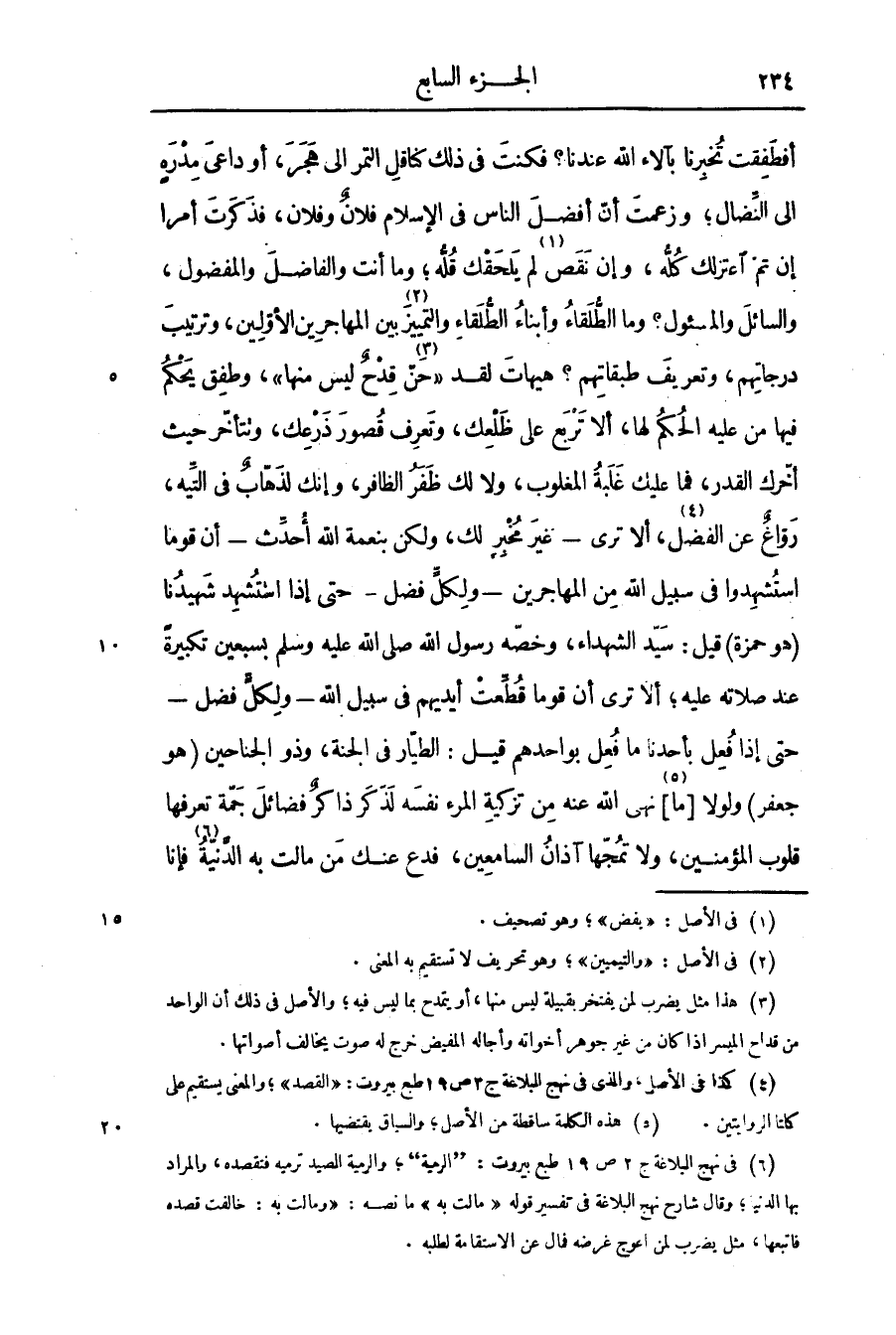 أفطفقت تخبرنا بآلاء الله عندنا؟ فكنت فى ذلك كناقل التمر الى هجر، أو داعى مدره الى النّضال؛ وزعمت أنّ أفضل الناس فى الإسلام فلان وفلان، فذكرت أمرا إن تمّ اعتزلك كلّه، وإن نقص «1» لم يلحقك قلّه؛ وما أنت والفاضل والمفضول، والسائل والمسئول؟ وما الطّلقاء وأبناء الطّلقاء والتمييز «2» بين المهاجرين الأوّلين، وترتيب درجاتهم، وتعريف طبقاتهم؟ هيهات لقد «حنّ «3» قدح ليس منها» ، وطفق يحكم فيها من عليه الحكم لها، ألا تربع على ظلعك، وتعرف قصور ذرعك، وتتأخّر حيث أخّرك القدر، فما عليك غلبة المغلوب، ولا لك ظفر الظافر، وإنك لذهاب فى التّيه، روّاغ عن الفضل «4» ، ألا ترى- غير مخبر لك، ولكن بنعمة الله أحدّث- أن قوما استشهدوا فى سبيل الله من المهاجرين- ولكلّ فضل- حتى إذا استشهد شهيدنا (هو حمزة) قيل: سيّد الشهداء، وخصّه رسول الله صلّى الله عليه وسلّم بسبعين تكبيرة عند صلاته عليه؛ ألا ترى أن قوما قطّعت أيديهم فى سبيل الله- ولكلّ فضل- حتى إذا فعل بأحدنا ما فعل بواحدهم قيل: الطيّار فى الجنة، وذو الجناحين (هو جعفر) ولولا [ما «5» ] نهى الله عنه من تزكية المرء نفسه لذكر ذاكر فضائل جمّة تعرفها قلوب المؤمنين، ولا تمجّها آذان السامعين، فدع عنك من مالت به الدّنية «6» فإنا