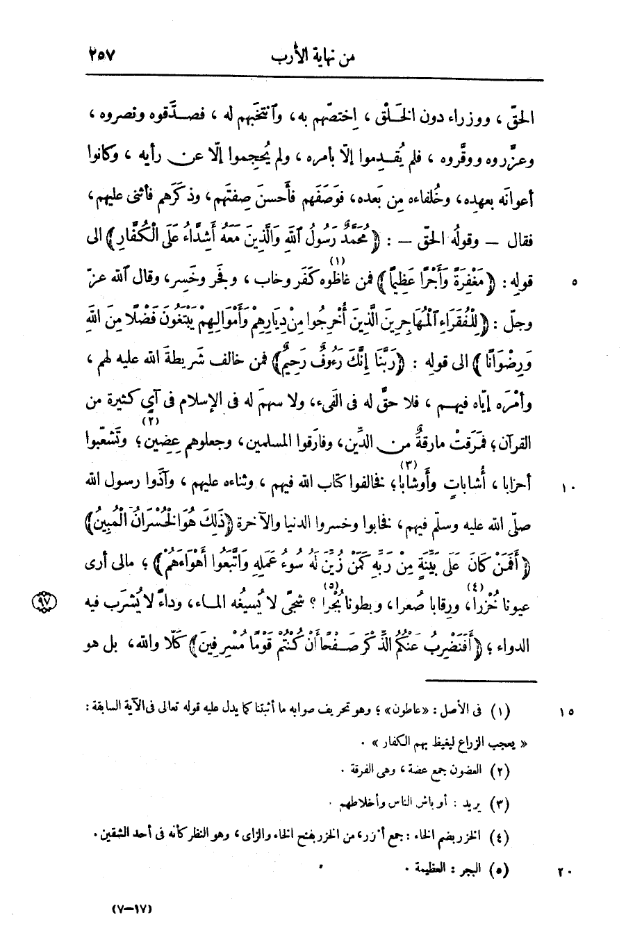 فمن خالف شريطة الله عليه لهم، وأمره إيّاه فيهم، فلا حقّ له فى الفىء، ولا سهم له فى الإسلام فى آى كثيرة من القرآن؛ فمرقت مارقة من الدّين، وفارقوا المسلمين، وجعلوهم عضين «2» ؛ وتشعّبوا أحزابا، أشابات وأوشابا «3» ؛ فخالفوا كتاب الله فيهم، وثناءه عليهم، وآذوا رسول الله صلّى الله عليه وسلّم فيهم، فخابوا وخسروا الدنيا والآخرة ذلِكَ هُوَ الْخُسْرانُ الْمُبِينُ*