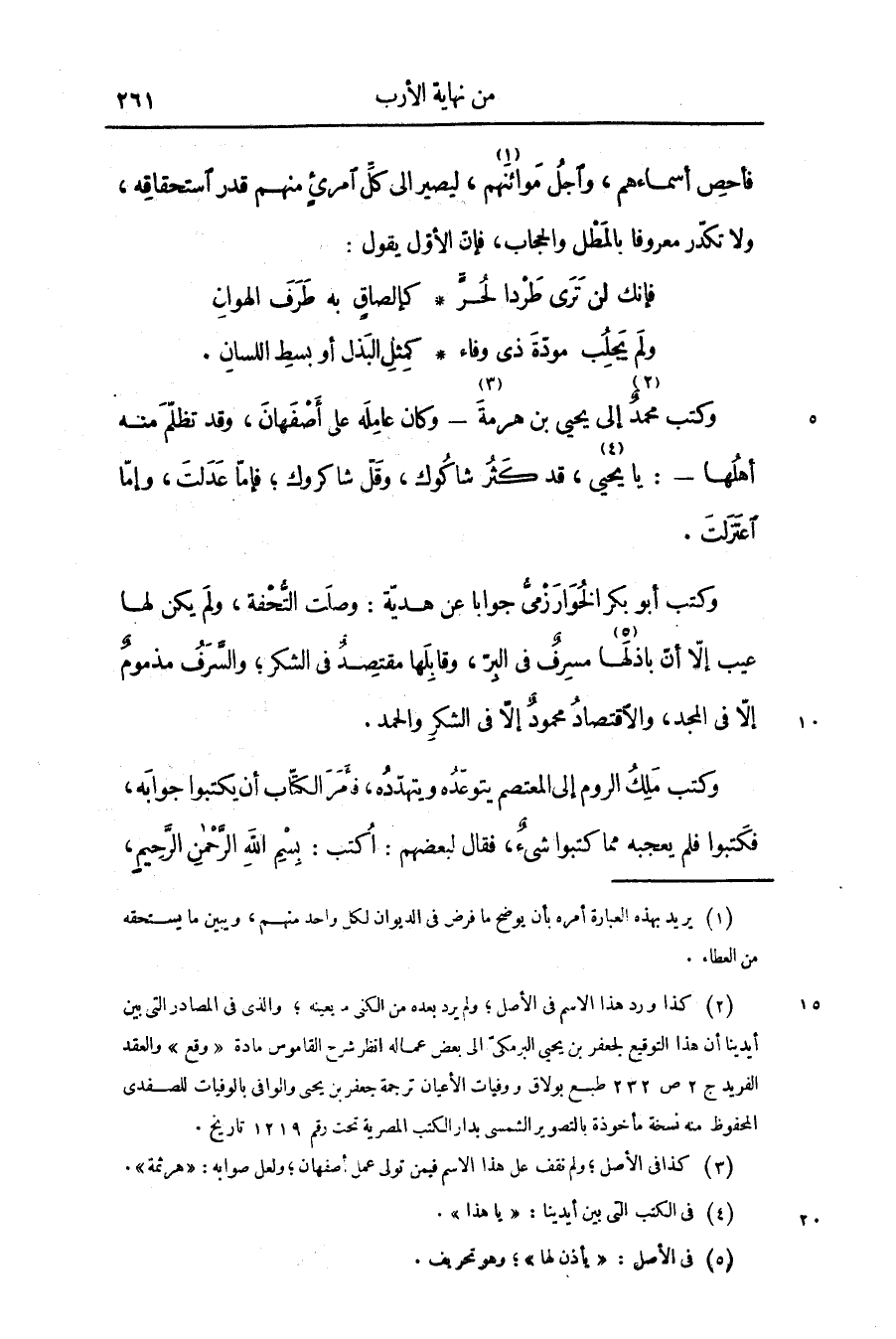 وكتب محمد «2» إلى يحيى بن هرمة «3» - وكان عامله على أصفهان، وقد تظلّم منه أهلها-: يا يحيى «4» ، قد كثر شاكوك، وقلّ شاكروك؛ فإمّا عدلت، وإمّا اعتزلت.
