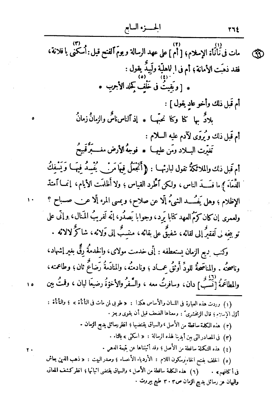 ما فسد الناس، ولكن اطّرد القياس؛ ولا أظلمت الأيام، إنما امتدّ الإظلام؛ وهل يفسد الشىء إلّا عن صلاح؛ ويمسى المرء إلّا عن صباح؟