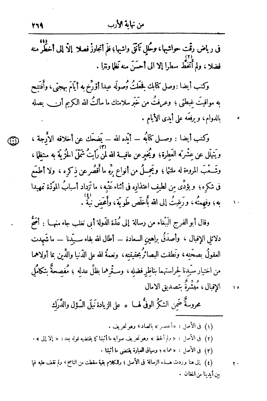 وقال أبو الفرج الببغاء من رسالة إلى عدّة الدّولة أبى تغلب