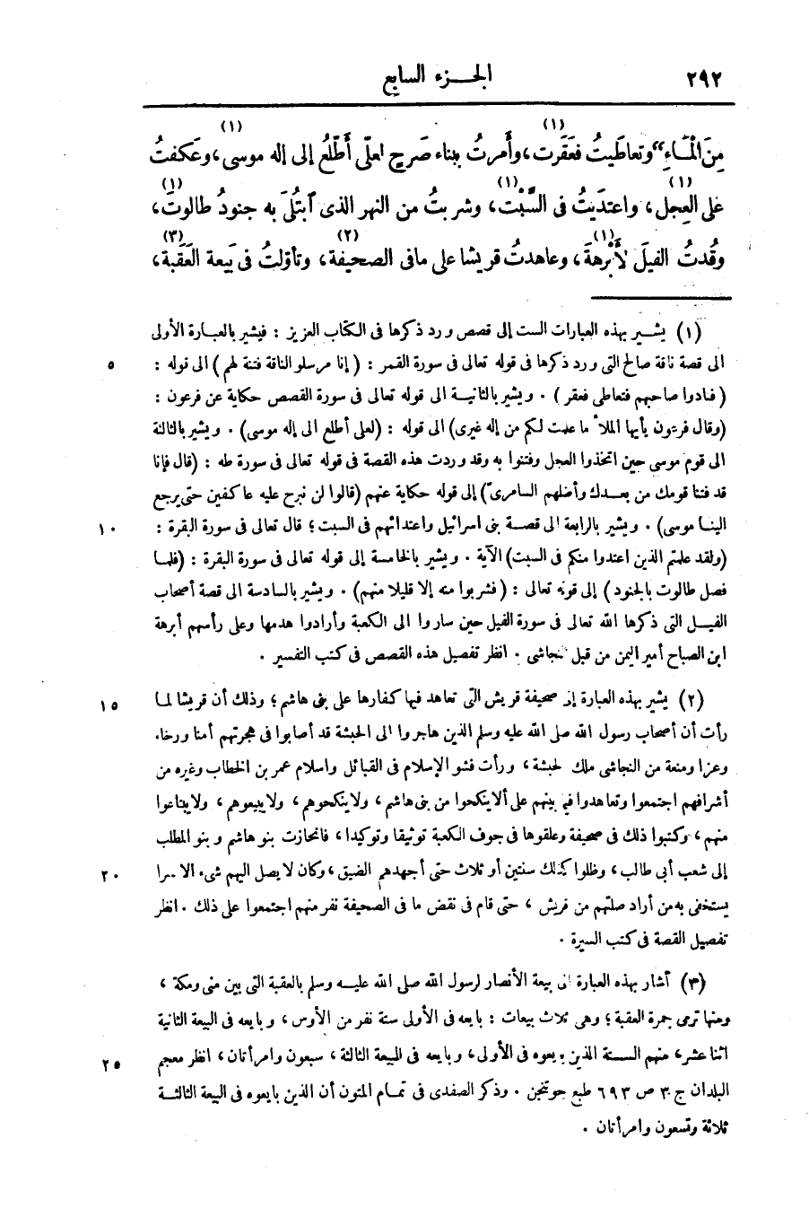من الماء» وتعاطيت فعقرت «1» ، وأمرت ببناء صرح لعلّى أطّلع إلى إله موسى «2» ، وعكفت على العجل «3» ، واعتديت فى السّبت «4» ، وشربت من النهر الذى ابتلى به جنود طالوت «5» ، وقدت الفيل لأبرهة «6» ، وعاهدت قريشا على ما فى الصحيفة «7» ، وتأوّلت فى بيعة العقبة «8» ،