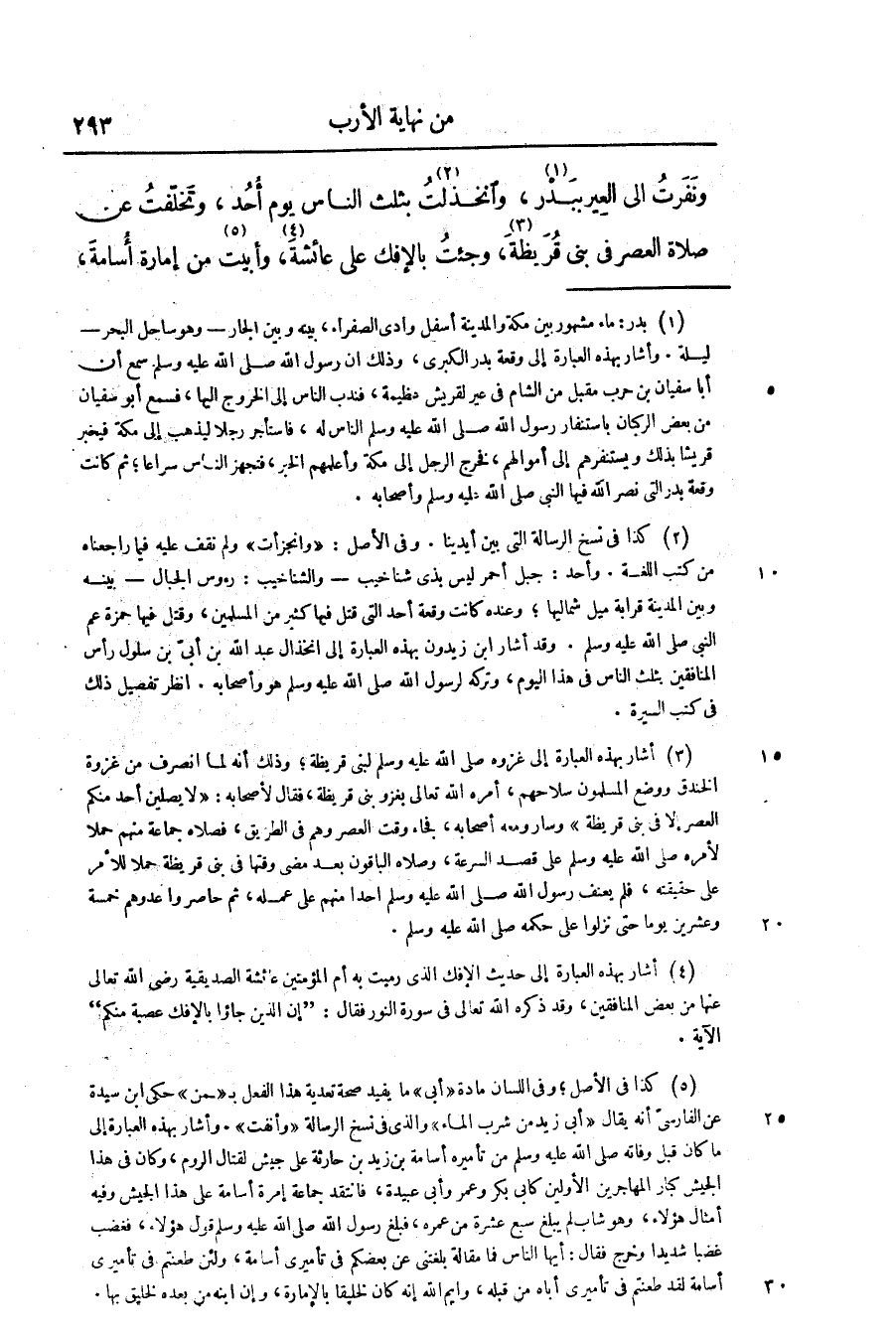 ونفرت الى العير ببدر «1» ، وانخذلت «2» بثلث الناس يوم أحد، وتخلّفت عن صلاة العصر فى بنى قريظة «3» ، وجئت بالإفك على عائشة «4» ، وأبيت «5» من إمارة أسامة،