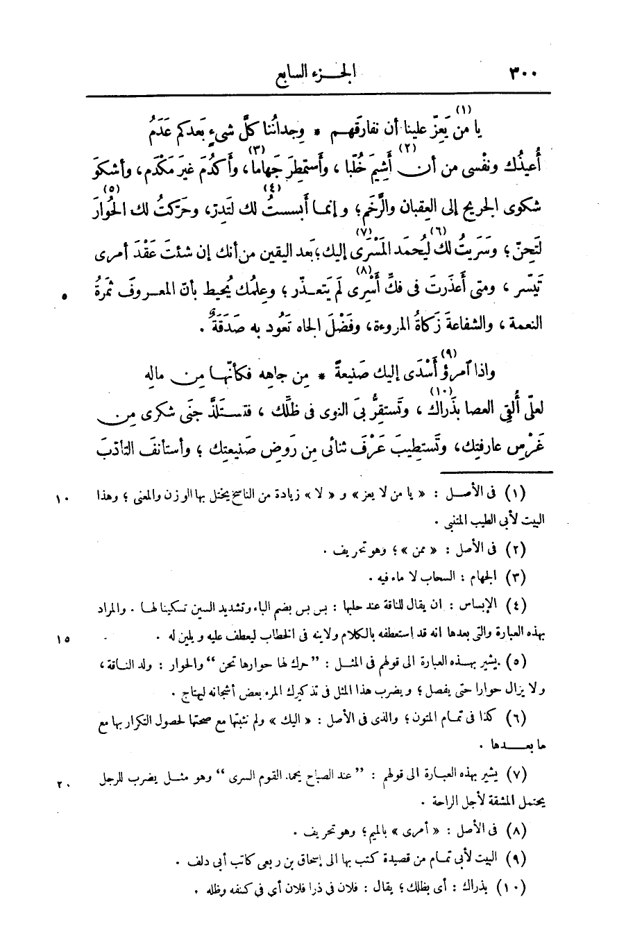 لعلّى ألقى العصا بذراك «10» ، وتستقرّ بى النوى فى ظلّك، فتستلذّ جنى شكرى من غرس عارفتك، وتستطيب عرف ثنائى من روض صنيعتك؛ وأستأنف التأدّب