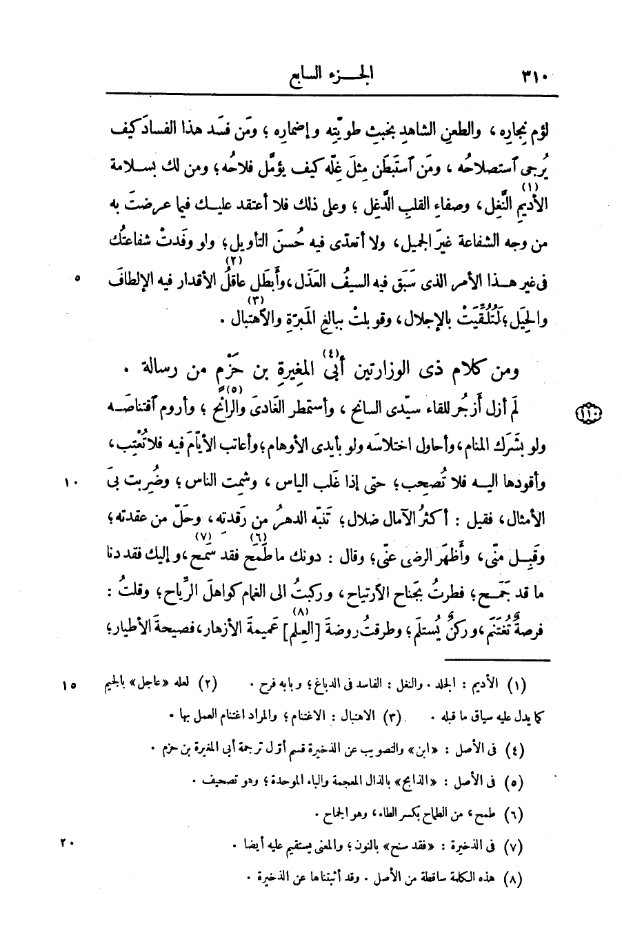 ومن كلام ذى الوزارتين أبى «4» المغيرة بن حزم من رسالة.