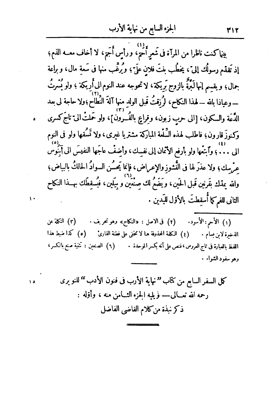 كمل السفر السابع من كتاب «نهاية الأرب فى فنون الأدب» للنويرى رحمه الله تعالى- ويليه الجزء الثامن منه، وأوّله: