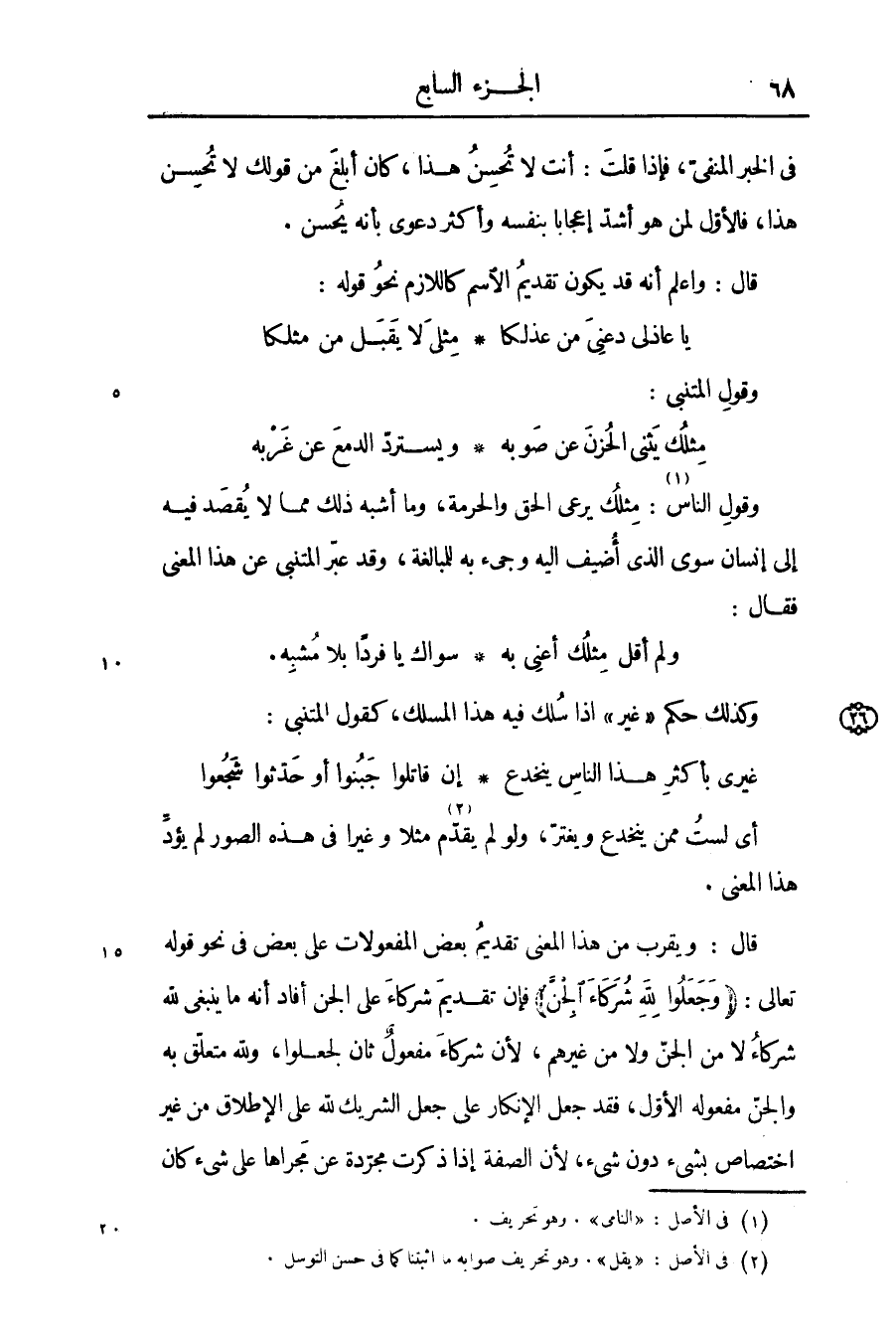 وكذلك حكم «غير» اذا سلك فيه هذا المسلك، كقول المتنبى: