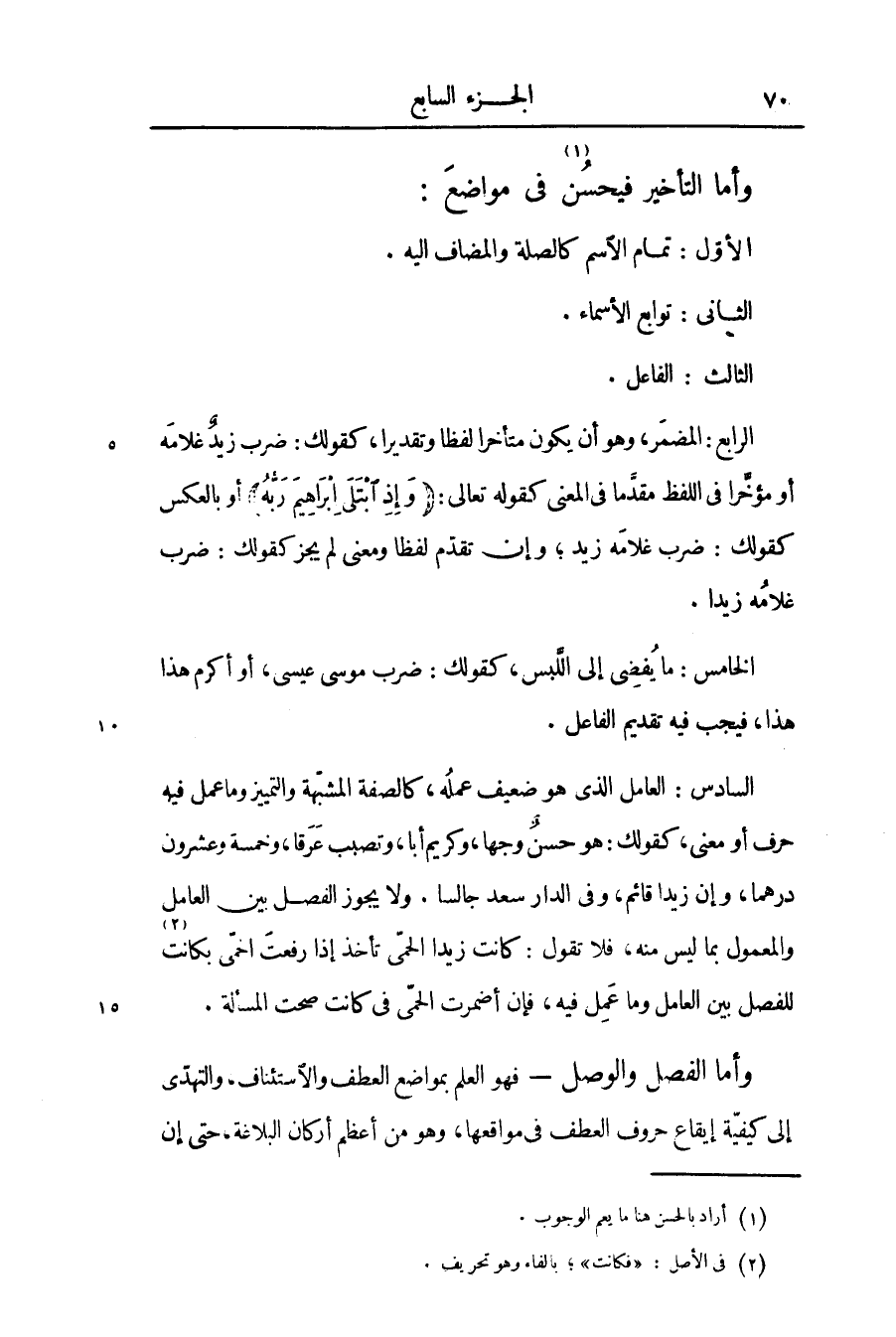 - فهو العلم بمواضع العطف والاستئناف، والتهدّى إلى كيفيّة إيقاع حروف العطف فى مواقعها، وهو من أعظم أركان البلاغة، حتى إن