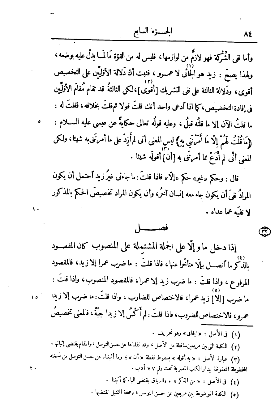 كان المقصود بالذكر «4» ما اتصل بإلّا متأخّرا عنها، فاذا قلت: ما ضرب عمرا إلا زيد، فالمقصود المرفوع، واذا قلت: ما ضرب زيد إلا عمرا، فالمقصود المنصوب، واذا قلت: