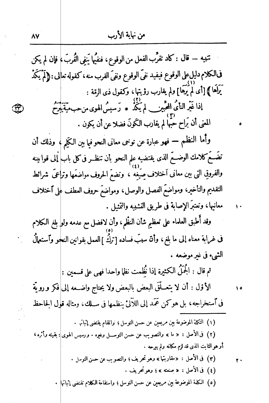 ثم قال: الجمل الكثيرة إذا نظمت نظما واحدا فهى على قسمين: