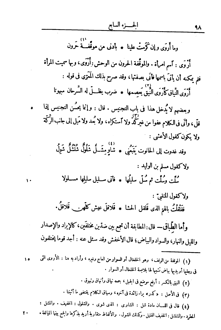 أروى: اسم امرأة. والموقّفة الحرون من الوحش: أروى، وبها سميت المرأة فلم يمكنه أن يأتى باسمها فأنى بصفتها، وقد صرح بذلك المعرّى فى قوله:
