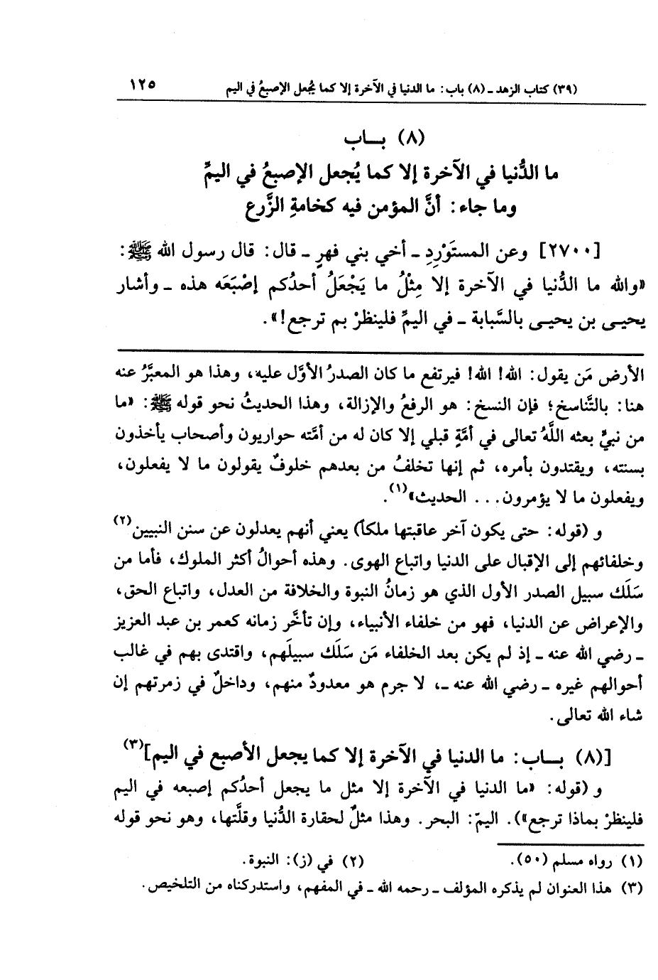 (8) باب ما الدنيا في الآخرة إلا كما يجعل الإصبع في اليم وما جاء أن المؤمن فيه كخامة الزرع