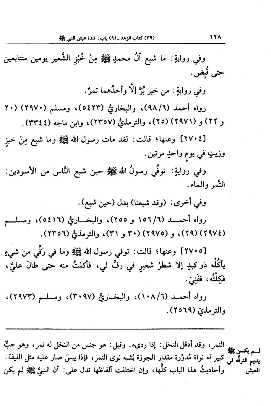 [2704] وعنها؛ قالت: لقد مات رسول الله صلى الله عليه وسلم، وما شبع من خبز وزيت في يوم واحد مرتين.