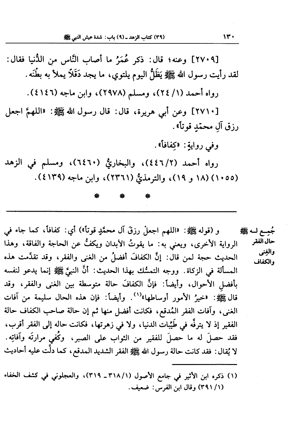 [2710] وعن أبي هريرة، قال: قال رسول الله صلى الله عليه وسلم: اللهم اجعل رزق آل محمد قوتا.