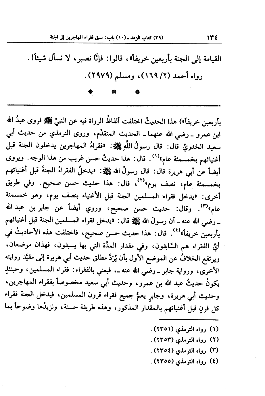 القِيَامَةِ إِلَى الجَنَّةِ بِأَربَعِينَ خَرِيفًا، قَالُوا: فَإِنَّا نَصبِرُ لَا نَسأَلُ شَيئًا.