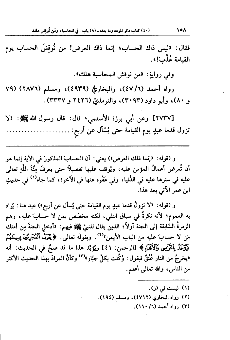 وفي رواية: مَن نُوقِشَ المحاسبة هلك.