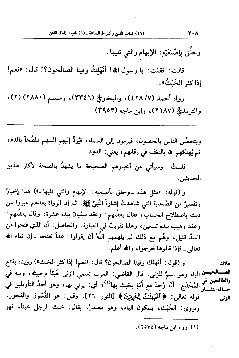 قالت: فقلت: يا رسول الله أنهلك وفينا الصالحون؟ قال: نعم إذا كثر الخبث.
