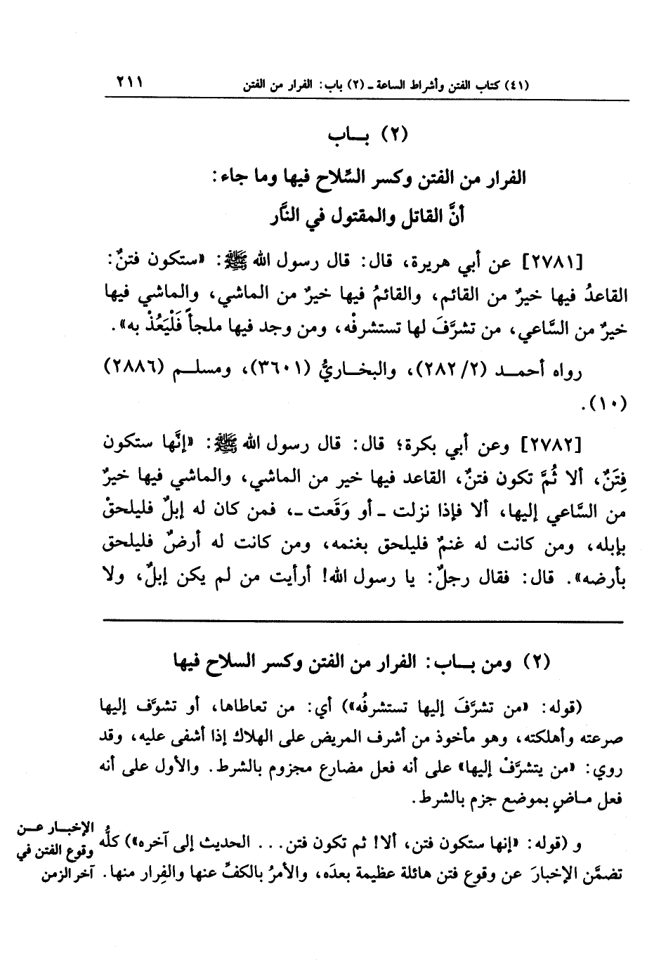 (2) ومن باب: الفرار من الفتن وكسر السلاح فيها