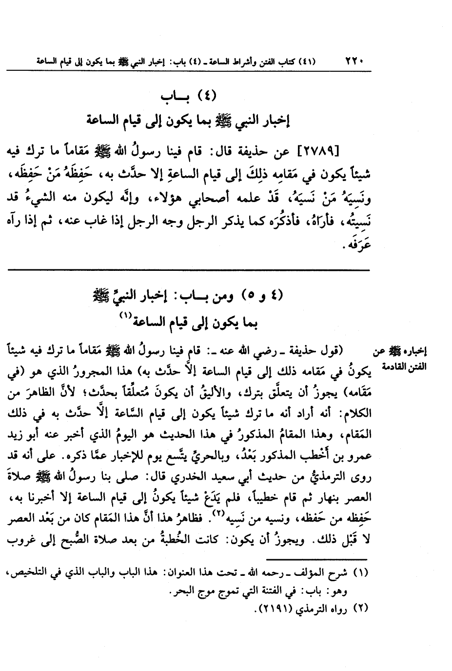 (4 و 5) ومن باب: إخبار النبي صلى الله عليه وسلم بما يكون إلى قيام الساعة (¬1)