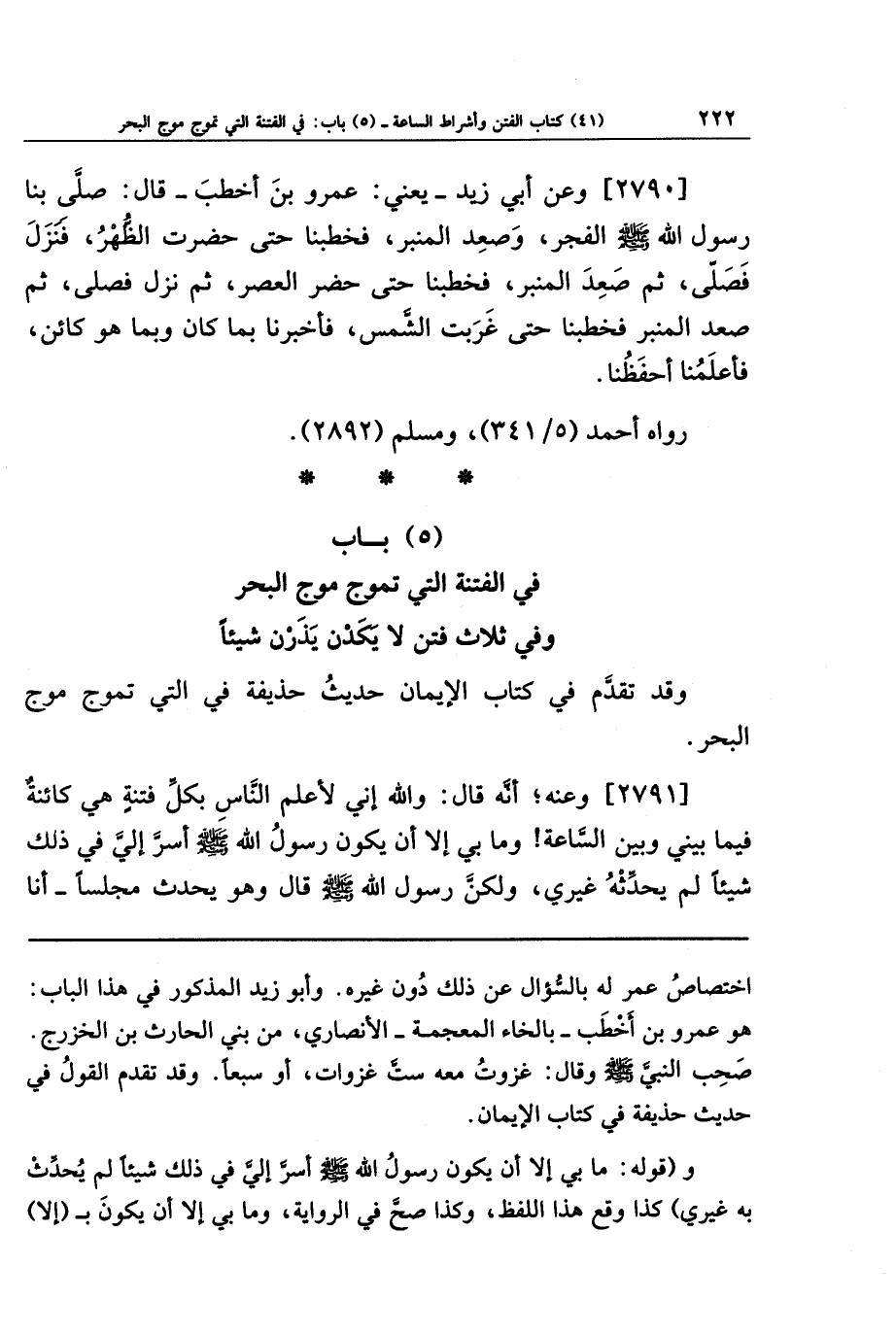 اختصاص عمر له بالسؤال عن ذلك دون غيره. وأبو زيد المذكور في هذا الباب: هو عمرو بن أخطب - بالخاء المعجمة - الأنصاري، من بني الحارث بن الخزرج. صحب النبي صلى الله عليه وسلم وقال: غزوت معه ست غزوات، أو سبعا. وقد تقدم القول في حديث حذيفة في كتاب الإيمان.