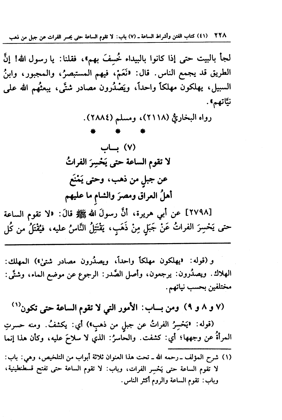 (7) باب لا تقوم الساعة حتى يحسر الفرات عن جبل من ذهب، وحتى يمنع أهل العراق ومصر والشام ما عليهم