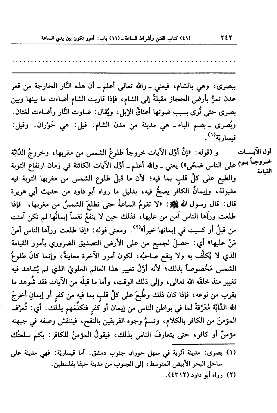 (¬1) بصرى: مدينة أثرية في سهل حوران جنوب دمشق. أما قيساريّة: فهي مدينة على ساحل البحر الأبيض المتوسط، إلى الجنوب من مدينة حيفا بفلسطين.