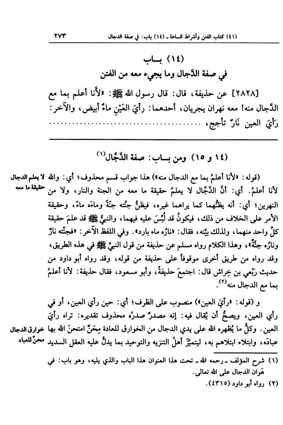 (14 و 15) ومن باب: صفة الدجال (¬1)