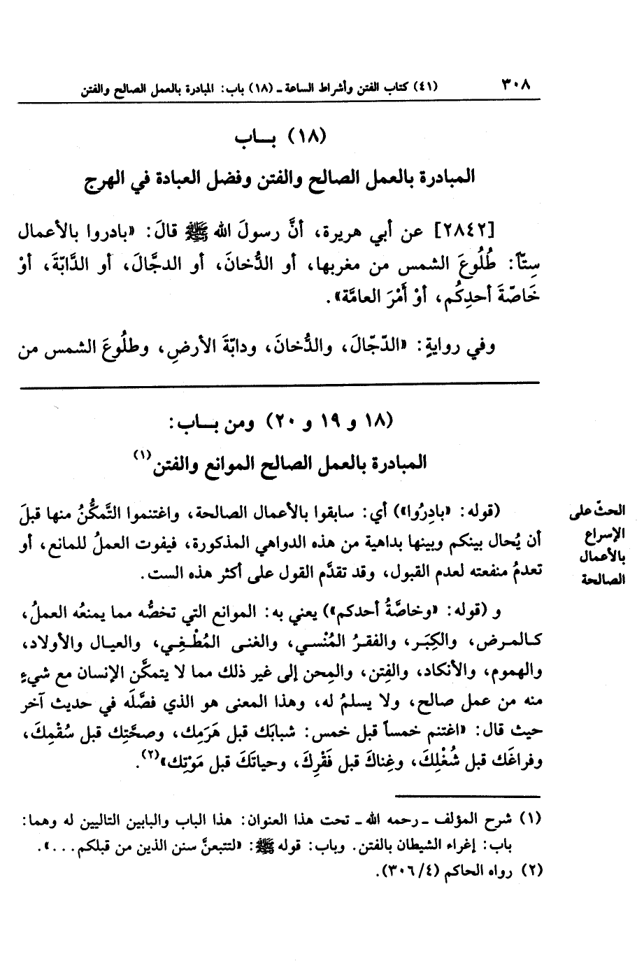 (18 و 19 و 20) ومن باب: المبادرة بالعمل الصالح الموانع والفتن (¬1)