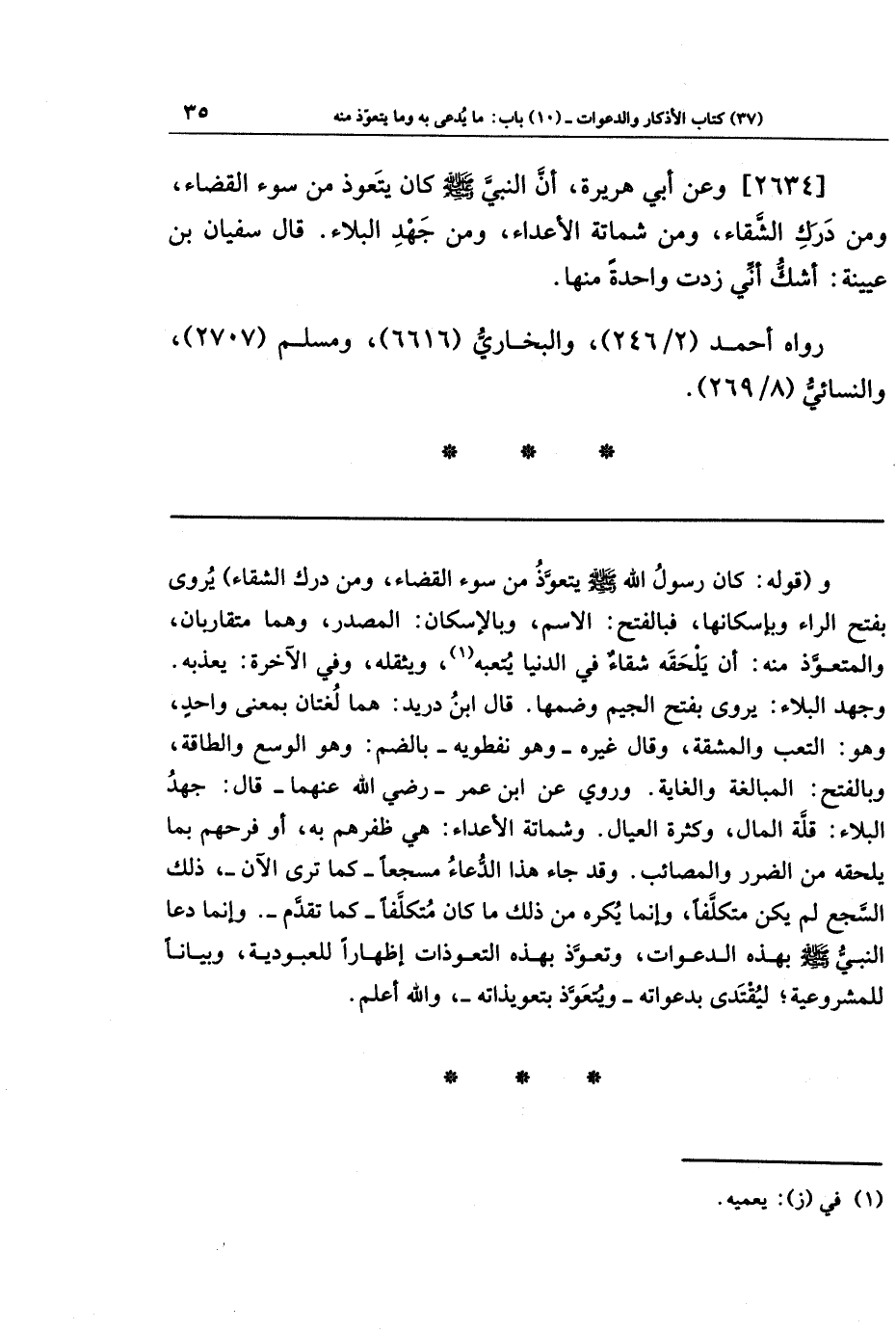 [2634] وعن أبي هريرة، أن النبي صلى الله عليه وسلم كان يتعوذ من سوء القضاء ومن درك الشقاء، ومن شماتة الأعداء، ومن جهد البلاء. قال سفيان بن عيينة: أشك أني زدت واحدة منها.