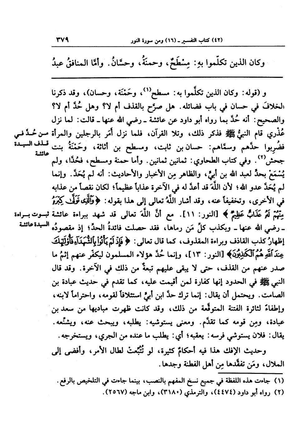 وَكَانَ الَّذِينَ تَكَلَّمُوا بِهِ: مِسطَحٌ، وَحَمنَةُ، وَحَسَّانُ. وَأَمَّا المُنَافِقُ عَبدُ