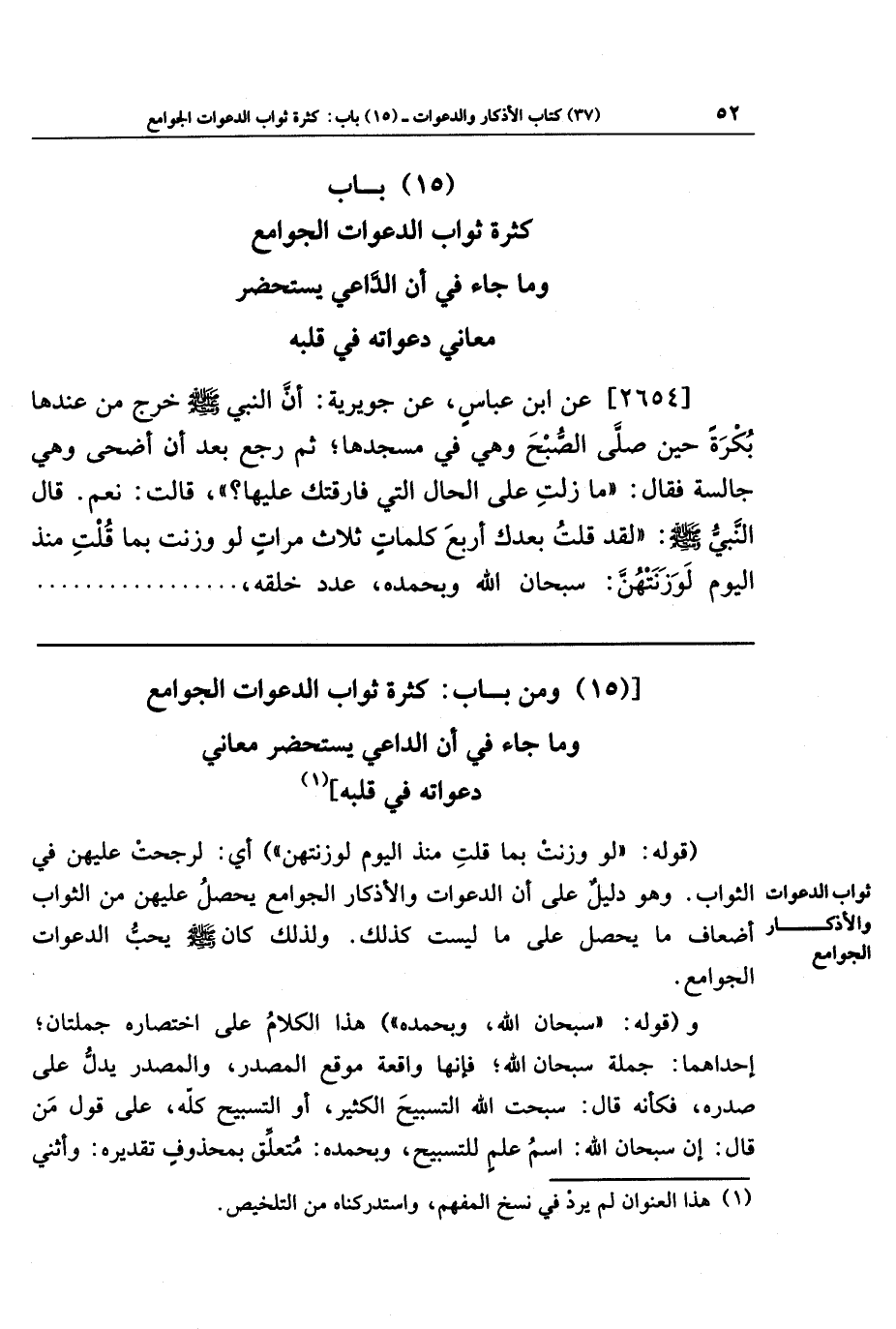 (15) باب كثرة ثواب الدعوات الجوامع وما جاء في أن الداعي يستحضر معاني دعواته في قلبه