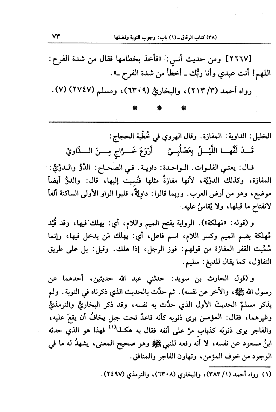 [2667] ومن حديث أنس: فأخذ بخطامها فقال من شدة الفرح: اللهم، أنت عبدي وأنا ربك. أخطأ من شدة الفرح.