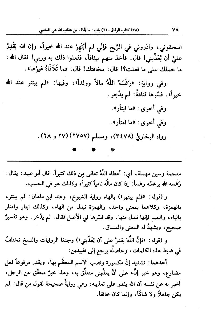 وفي رواية: رغسه الله مالا وولدا. وفيها: لم يبتئر عبد الله خيرا. فسرها قتادة: لم يدخر.