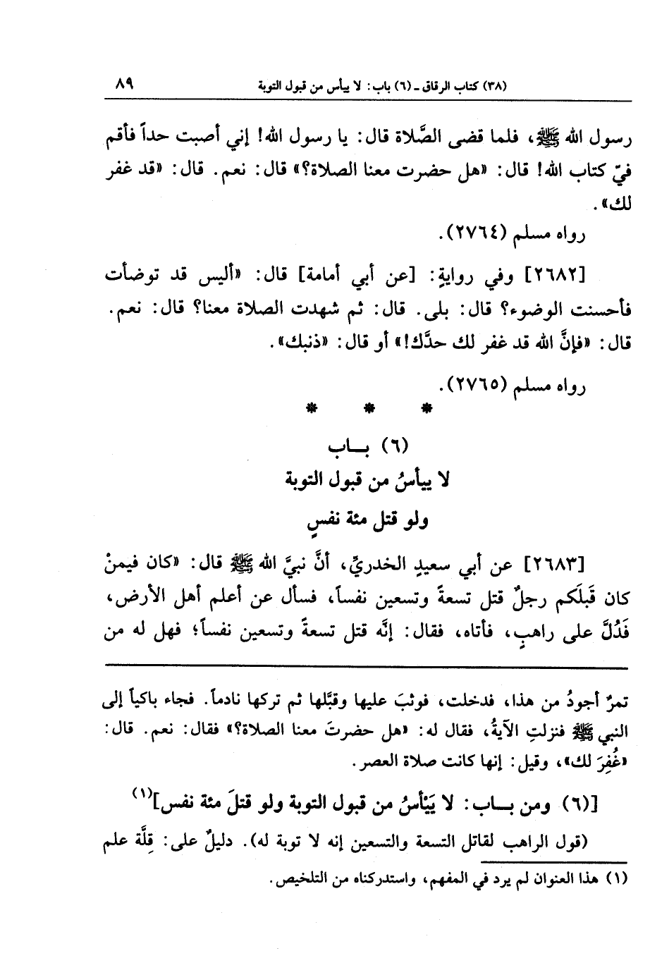 (6) باب لا ييأس من قبول التوبة ولو قتل مائة نفس