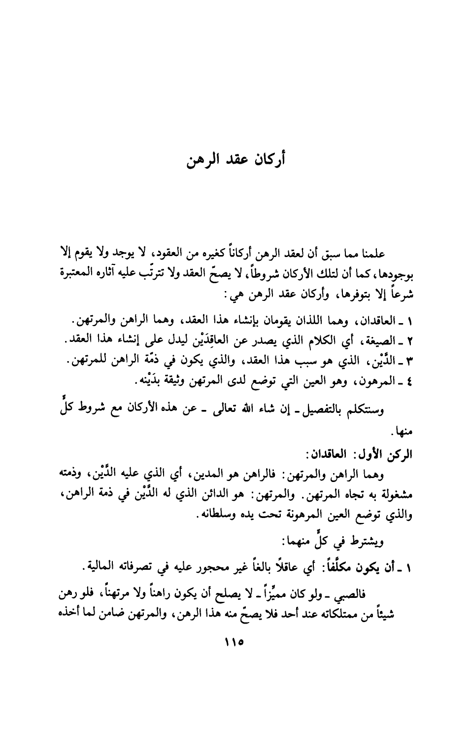 1 - العاقدان، وهما اللذان يقومان بإنشاء هذا العقد، وهما الراهن والمرتهن.