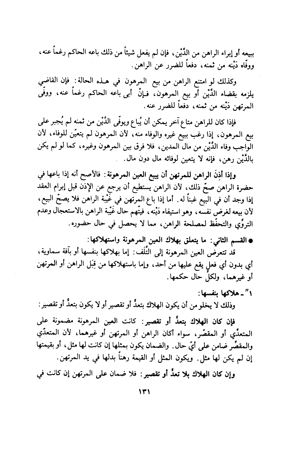 - القسم الثاني: ما يتعلق بهلاك العين المرهونة واستهلاكها: