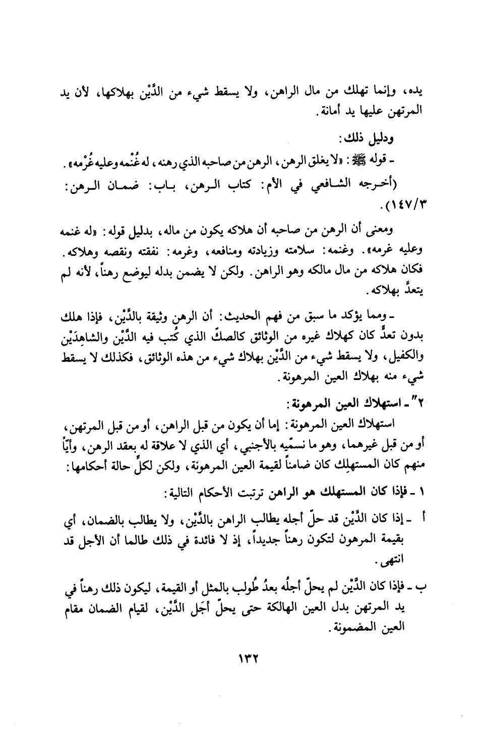 قوله صلى الله عليه وسلم: "لا يغلق الرهن، الرهن من صاحبه الذي رهنه، له غُنْمه وعليه غُرْمه". (اخرجه الشافعي في الأم: كتاب الرهن، باب: ضمان الرهن: 3/ 147).