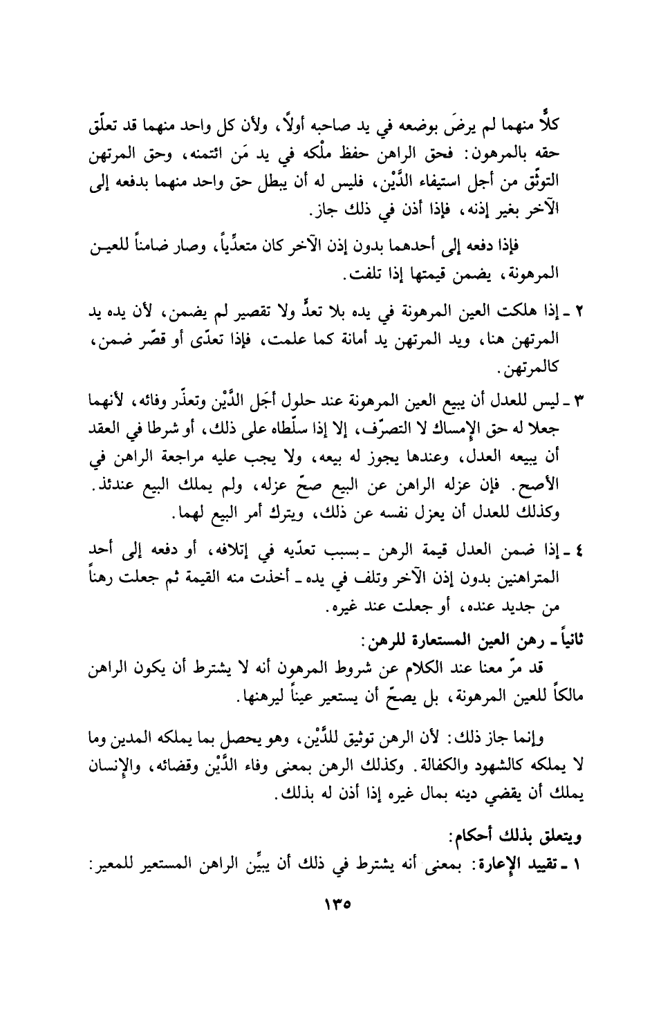 3 - ليس للعدل أن يبيع العين المرهونة عند حلول أجَل الدَّيْن وتعذّر وفائه، لأنهما جعلا له حق الإمساك لا التصرّف، إلا إذا سلّطاه على ذلك، أو شرطا في العقد أن يبيعه العدل، وعندها يجوز له بيعه، ولا يجب عليه مراجعة الراهن في الأصح، فإن عزله الراهن عن البيع صحّ عزله، ولم يملك البيع عندئذ. وكذلك للعدل ان يعزل نفسه عن ذلك، ويترك أمر البيع لهما.