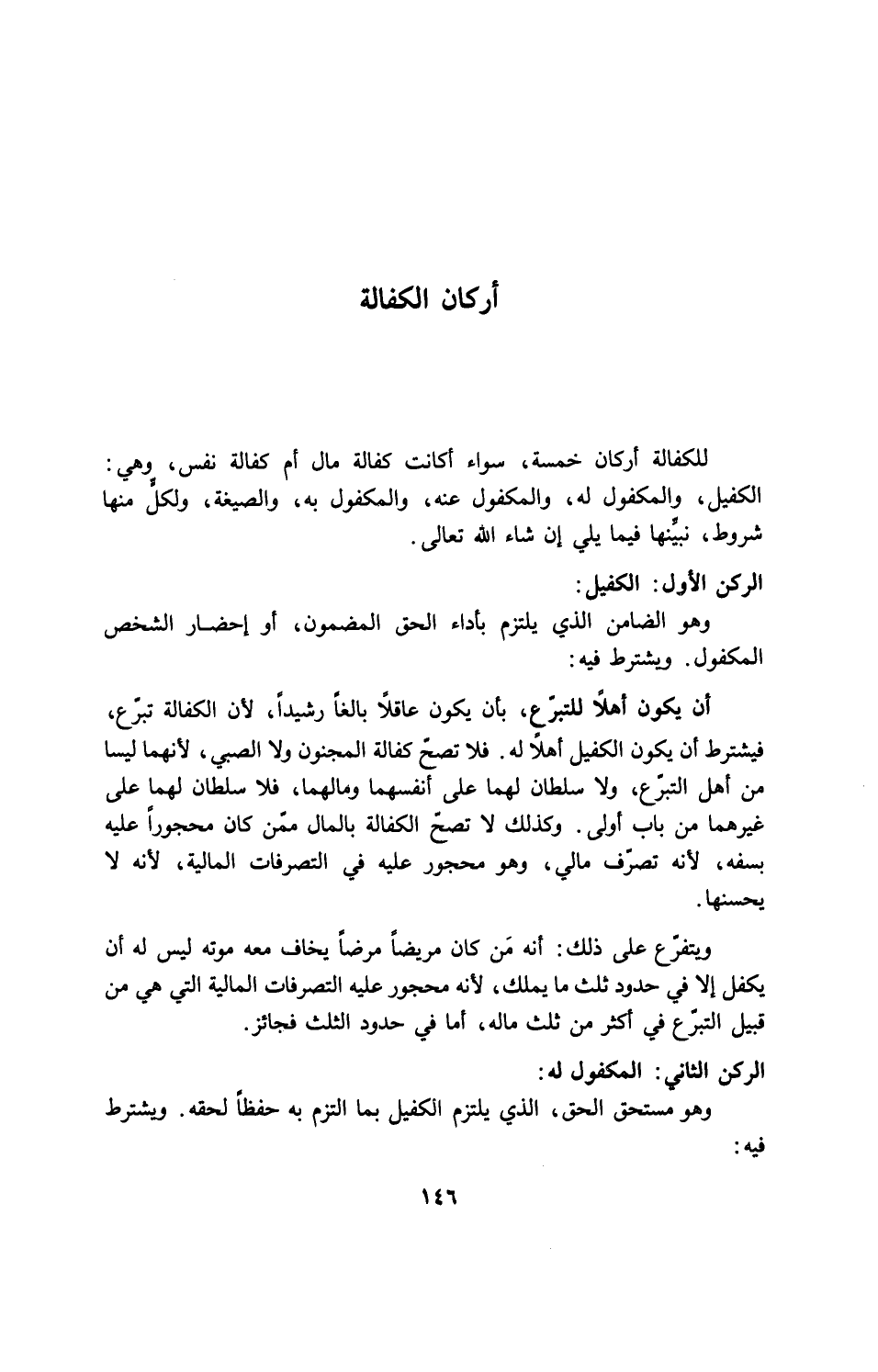 أن يكون اهلاً للتبرّع، بأن يكون عاقلاً بالغاً رشيداً، لأن الكفالة تبّرع، فيشترط أن يكون الكفيل أهلاً له، فلا تصحّ كفالة المجنون ولا الصبي، لأنهما ليسا من أهل التبرّع، ولا سلطان لهما على أنفسهما ومالهما، فلا سلطان لهما على غيرهما من باب أولى، وكذلك لا تصحّ الكفالة بالمال ممّن كان محجوراً عليه بسفه، لأنه تصرّف مالي، وهو محجور عليه في التصرفات المالية، لأنه لا يحسنها.