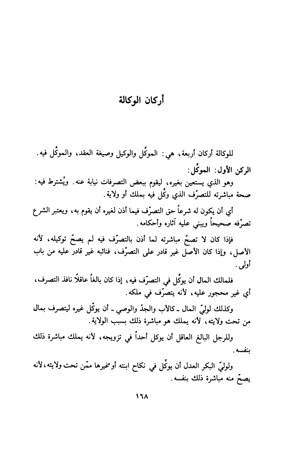 للوكالة أركان أربعة، هي: الموكِّل والوكيل وصيغة العقد، والموكِّل فيه.
