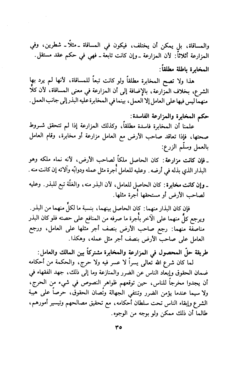 والمساقاة، بل يمكن ان يختلف، فيكون في المساقاة - مثلاً - شطرين، وفي المزارعة اثلاثاً: لأن المزارعة - وان كانت تابعة - فهي في حكم عقد مستقل.