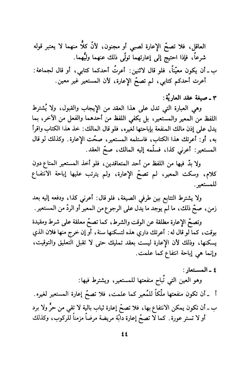 3 - صيغة عقد العاريَّة: