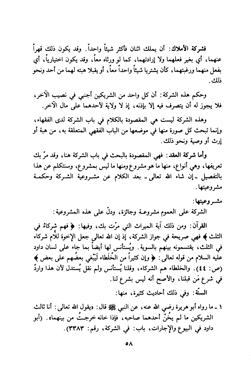 وهذه الشركة ليست هي المقصودة بالكلام في باب الشركة لدى الفقهاء، وانما تبحث كل صورة منها في موضعها من الباب الفقهي المتعلقة به، من هبة او إرث أو وصية ونحو ذلك.