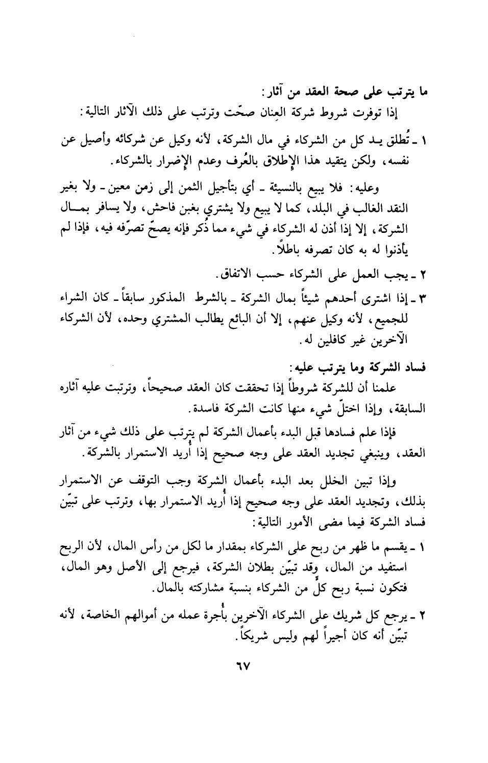 إذا توفرت شروط شركة العِنان صحّت وترتب على ذلك الآثار التالية: