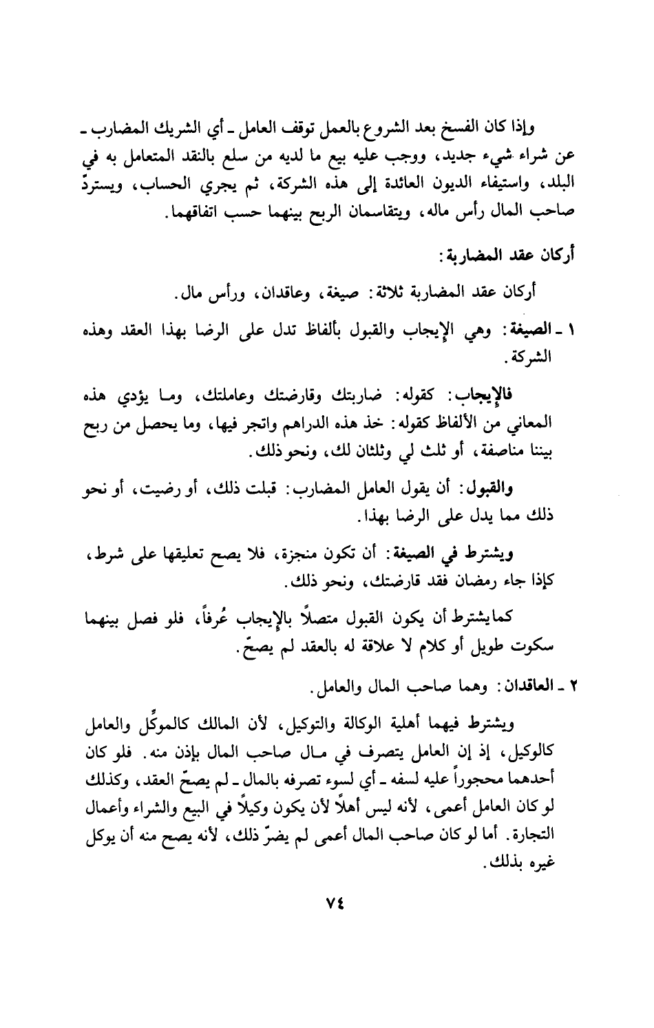 أركان عقد المضاربة ثلاثة: صيغة، وعاقدان، ورأس مال.